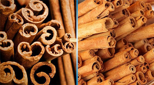 Beţişoarele de scorţişoară au o culoare roşietică, precum şi o structură mult mai fină. Cassia este puţin mai dură şi e sucită pe o parte.