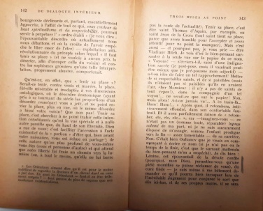Revoluționarul Șora, în etate de doar 30 de ani, își ridică în 1946 pumnul revoltat către «burghezia în declin și de aceea esențialmente ipocrită» («une bougeoisie déclinante et, partant, essentiellement hypocrite», p. 142), batjocorește în treacăt «credincioasa smochinită și preotul căldicel» («la dévote confite et le curé tiède», p. 143) și apoi îl atacă frontal pe milionarul fabricant de cauciuc, care ocupă pe nedrept locul altor 99 de oameni (pp. 144-145)”, mai arată Papahagi.