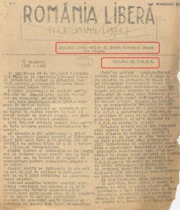 O Notă biografică întocmită de Securitate notează sec: „După terminarea războiului a continuat să rămână în Franța și numai în anul 1948, când a aflat că este urmărit de poliție pentru a fi expulzat în țară, a venit și s-a stabilit în București”. Ofițerul responsabil de caz își mai informează superiorii că Mihai Șora a fost din 1946 membru al Partidul Comunist Francez și din 1945 Secretar General al Frontului Național Român, responsabil și de publicația acestuia, România liberă. Aici se cuvine de adăugat că atât Frontul respectiv cât și organul lui erau aflate sub controlul NKVD dezvoltând o propagandă sovietică activă chiar din timpul războiului, când îndemnau românii din țară și străinătate să se îndrepte spre „aliatul firesc”, URSS, „garantul independenței României”, căruia i se cuvine de drept Basarabia, de care România fascistă și-a bătut joc (facsimil reprodus din Arhivele Naționale ale Franței).
