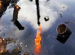 În anul 2012, un incendiu care a izbucnit la o sondă Chevron de exploatare a gazelor a reușit să fie stins abia după mai mult de o lună de zile. Doi muncitori și-au pierdut viața datorită exploziei. Pământul şi sursele de apă a mii de localnici au fost poluate în urma incidentului, iar Chevron a fost dată în judecată pentru despăgubiri în valoare de 5 miliarde de dolari. Procurorii au afirmat că Chevron a refuzat în mod repetat să ia măsurile necesare şi să stopeze operaţiunile de exploatare la respectiva sondă, deşi primise de mai multe ori avertismente cu privire la proasta funcţionare a echipamentelor şi a acumulării unor gaze care au condus la explozia sondei.