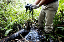 „Cei de la Chevron ne-au spus că petele negre de ţiţei din apă sunt pline de vitamine şi minerale!” – Emergildo Criollo, şeful grupului de băştinaşi Cofan.