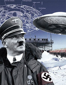 Au început să circule zvonuri cum că, deși Germania a fost învinsă iar trupele aliate măturau toată Europa continentală, nemții au făcut o selecție a personalului militar și a oamenilor de știință, care și-au stabilit o bază în Antarctica, unde au continuat să dezvolte aeronave avansate bazate pe tehnologii extraterestre. Este interesant de remarcat faptul că, la sfârșitul războiului, aliații au estimat că cca. 250.000 de germani lipseau la recensământ, chiar și ținând cont de accidente și decese. Acest număr ar reprezenta o bază destul de mare pentru o colonie, care să ofere gradul necesar de calificare, expertiză și forță de muncă pentru o bază industrială de orice fel, să nu mai vorbim de producție, chiar și după standardele de azi, cu grad foarte mare de tehnologizare. Mulți cercetători ai fenomenului OZN erau conștienți de multitudinea de rapoarte privind observarea de „farfurii zburătoare” cu svastici sau cruci de fier pe ele, „extratereștri” ce vorbeau limba germană etc. Cele mai multe erau mărturii despre oameni răpiți care au fost luați în baze subterane având embleme cu svastică pe pereți. Aşa a fost şi în cazul lui Alex Christopher, autorul cărţii Cutia Pandorei, care menționează că a fost răpit și a văzut „reptiloizi” și „naziști”, care lucrează împreună la bordul unei nave antigravitație sau în cadrul bazelor subterane.