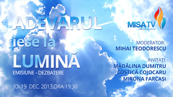 Un nou episod din seria de emisiuni „Adevărul iese la lumină” se va transmite joi, 19 decembrie de la ora 19.30 în direct la MISATV.