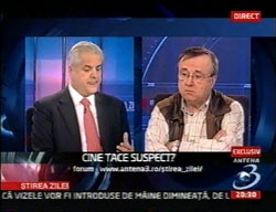 Ion Cristoiu: Iertaţi-mă o secundă. Două minute şi-am terminat. Mă uit la dumneavoastră şi nu-mi vine să cred că v-am apărat. […] Vă reamintesc că dumneavoastră aţi pierdut alegerile, printre altele şi pentru că aceeaşi poliţie – şi chiar era condusă de ministrul dumneavoastră de Interne – şi aceiaşi procurori au ordonat o percheziţie cu mascaţi, brutală, la televizor, la MISA. Vă reamintesc… poate greşesc!?…