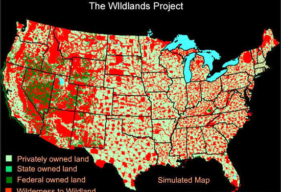 The Wildlands Project was the brainchild of Earth First’s Dave Foreman and it literally calls for the “re-wilding” of 50% of all the land in every state – back to the way it was before Christopher Columbus set foot on that land.
