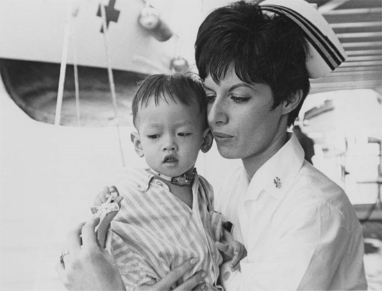 14. Locotenentul Kathleen Glover îngrijind un copil orfan vietnamez.