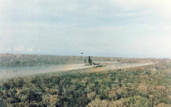 1. Patru avioane zburând deasupra Vietnamului și împrăștiind chimicale.