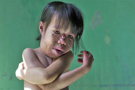 21. Nguyen The Hong Van, o fetiță de 13 ani, născută cu malformații ale pielii și cu handicap mintal. A crescut lângă o zonă în care era depozitat Agentul Oranj.