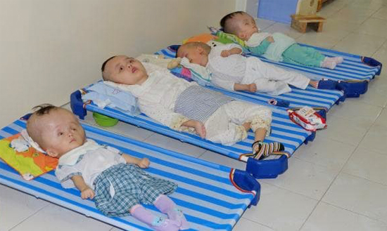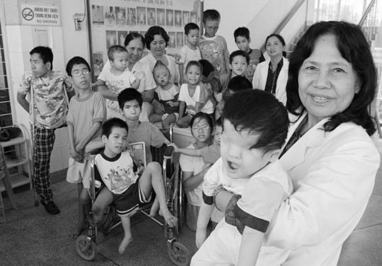 23. Profesorul Nguyen Thi Ngoc Phuong împreună cu copiii născuți cu handicap de care are grijă. Toți s-au născut cu deficiențe cauzate de Agentul Oranj.