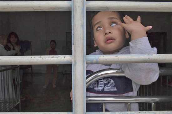 6. Un băiețel de 5 ani, născut orb și mut din cauza Agentului Oranj stă la fereastra zăbrelită a unui orfelinat.