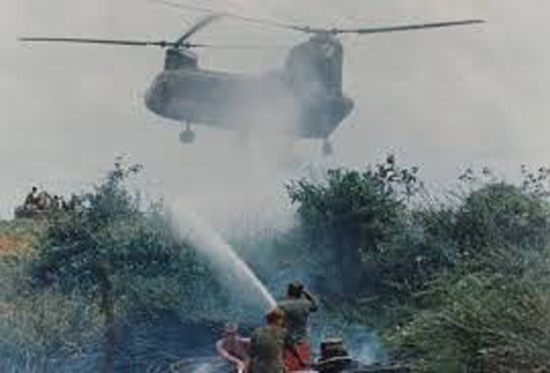 18. Elicopter american împrăștiind Agentul Oranj peste terenurile agricole vietnameze.