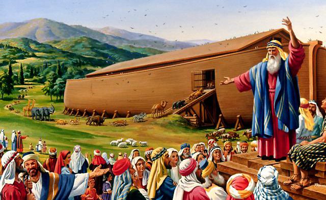 Şi Noe a început să-şi facă corabia şi oamenii au venit să-l întrebe: „Noe, ce faci?“ Iar Noe le-a zis: „Dumnezeu mi-a poruncit să fac o corabie, fiindcă vrea să piardă lumea”. Oamenii i-au spus: „Tu, Noe, eşti nebun! Ce-a păţit şi Dumnezeu? A înnebunit şi vrea să piardă lumea?”. Dar Noe şi-a văzut de lucru şi în o sută de ani a isprăvit-o.