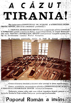 Am aflat ulterior de la colegii din MAE că, după ce au fost capturaţi, soţii Ceauşescu au fost duşi la Aeroportul din Bacău şi de acolo la MOSCOVA (aşa cum Milosevic a fost capturat şi dus la HAGA, unde a fost ulterior ucis). Oamenii puşi de ION ILIESCU şi Alexandru Mironov în instituţiile statului refuză acum deshumarea lor pentru a acoperi această grosolană înscenare. Cadavrele împuşcate care au fost filmate ca fiind soţii Ceauşescu fuseseră aduse anterior de la Piaţa Universităţii şi machiate pentru a semăna cu aceştia.