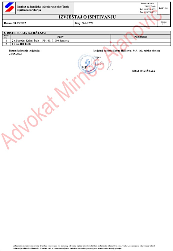 Redăm comunicatul și documentul emis de Institutului de Inginerie Chimică din Bosnia cu datele analizei: