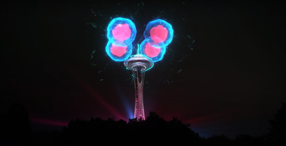 În ajunul Anului Nou 2021, Turnul Spațial din Seattle a prezentat un spectacol luminos virtual care a expus imagini bizare, cum ar fi o spirală dublă a ADN-ului, elemente de geometrie ocultă și câteva figuri de rău augur.