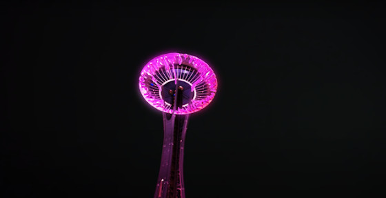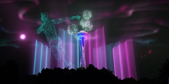 Folosind tehnologia sky-mapping și filmări video reale, Acul Spațial a fost stratificat cu expresii artistice digitale captivante, pentru a crea o iluzie de culoare și mirare. În realitate, turnul a fost luminat în culoarea magenta distinctivă a T-Mobile, dar pe ecran, spectatorii au fost uimiți de un spectacol virtual, care a înconjurat Acul Spațial și cerul de deasupra.