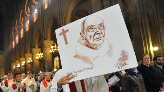 Fr Hamel reportedly shouted “Be gone, Satan!” as the men slit his throat, something Archbishop Dominique Lebrun mentioned in his tribute to him. In a memorial service with members of the Muslim community present, the archbishop explicitly addressed others who may be tempted by extremism.