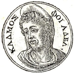 Potrivit legendei antice, Cadmos s-a stabilit în Grecia şi i-a învăţat pe localnici alfabetul. Ca de obicei, mitul exprimă o viziune înfrumuseţată a realităţii; fenicienii, navigatori renumiţi, şi-au „exportat” scrierea în toate aşezările din bazinul mediteranean (o inscripţie de pe un monument din Sardinia datează din secolul IX-lea î.H.).
