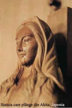 Întrucât minunile nu sunt foarte frecvente la budişti, această statuie a pus în încurcătură toate autorităţile ecleziastice şi politice. Deşi a fost studiată, analizată, radiografiată, nu s-a descoperit în ea niciun mecanism, furtun sau cristal. Evenimentul a fost senzaţional: statuia unei „zeiţe“ străine se manifesta în Ţara Soarelui Răsare! Pe 4 ianuarie 1975, statuia Fecioarei aflată în Mănăstirea din oraşul Akita a început să plângă, marcând începutul primului miracol constatat de milioane de japonezi de toate confesiunile. Acest fenomen supranatural a durat până pe 15 septembrie 1981, când a avut loc a 101-a şi ultima lacrimaţie. Mitsuo Fukushima, reporter la Fuji News, dar şi alte două canale de televiziune plasaseră camere de luat vederi în faţa statuii, pentru a o filma 24 din 24 de ore, ca să surprindă lacrimile care se prelingeau pe obrajii de lemn! Iată comentariului episcopului, total depăşit de situaţie, reprodus în lucrarea „Akita, lacrimile şi mesajele Fecioarei“ de Teiji Yasuda: