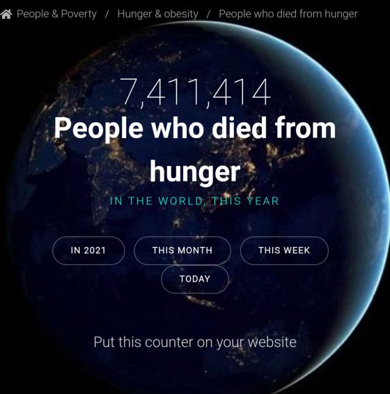 Anul acesta situația se anunță chiar mai dramatică, până în prezent înregistrându-se deja peste 1,7 milioane de decese din cauza foamei. (Datele actualizate sunt disponibile aici.)