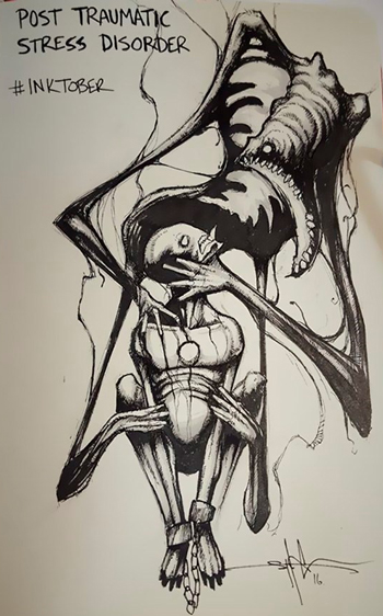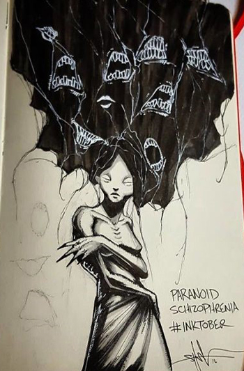 Every year million artists participate in Inktober drawing challenge where they draw something everyday for each day of October. Artist Shawn Coss decided to draw mental illnesses.