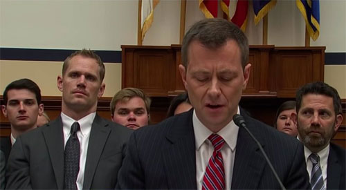 Congresmanii din Comisia pentru afaceri juridice l-au audiat pe agentul FBI Peter Strzok, acuzat de președintele Trump de „trădare”, după ce s-a aflat despre mesajele cu caracter politic schimbate de acesta și amanta sa, Lisa Page, agentă FBI la rându-i, în timp ce anchetau presupusa implicare a Rusiei în alegerile prezidențiale din 2016. Într-unul dintre mesajele date amantei, agentul Strzok arăta că „îl va opri” pe Trump să devină președinte. După ieșirea la lumină a acestor mesaje, agentul a fost eliminat din echipa procurorului Robert Mueller care anchetează așa-numitul dosar Russiagate. Un alt mesaj din 2016 l-a făcut pe agentul Strzok cunoscut în România. Strzok: „E amuzant să privești și să te gândești [text eliminat]. Nu e de mirare că e așa necioplit dat fiind că e… și acești români nu sunt măcar țigani.”. Page: „Serios acum, îi cam urăsc. Sunt sigur [text eliminat] bine. Dar sunt un amestec din necinstea rușilor cu atitudinea de «mi se cuvine» a italienilor. Grețos!”.