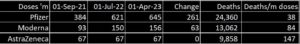 S-ar putea să vă simțiți mai bine dacă vi s-a injectat „vaccinul” ARNm Pfizer/BioNTech, după ce ați aflat că numărul total de decese la un milion este cel mai mic. 38 per milion de doze este un risc de unu la 26.316 per doză – la fiecare 26.316 doze, cineva moare.