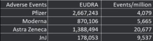Datele EUDRA arată că există de 4-5 ori mai multe decese și evenimente adverse raportate la un milion de doze în cazul „vaccinurilor” anti-covid 19 cu vectorul viral în comparație cu „vaccinurile” ARNm C19 ‒ tăcerea din partea mass-mediei continuă