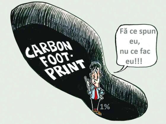 Media emanației de CO2 a unui om obișnuit este de 4 tone pe an. Americanii au o amprentă de carbon de 4 ori mai mare (16 tone/an), iar britanicii, de 3 ori mai mare. Ca să se încadreze în criteriile pseudo-științifice menite a reduce temperatura globală cu 2 grade până în 2040, americanii, britanicii și noi, restul, amărăștenii, e nevoie să ne reducem amprenta de carbon la maxim 2 tone/an.