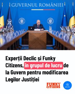 Mai departe, tot de Funky Citizens dăm și când este vorba despre Comitetul pe justiție creat de PM Bolojan, pe care l-am contestat în instanță, apreciind că reprezintă o amenințare serioasă la adresa funcționării în limite constituționale a puterilor în stat, de aici și întrebarea mea cum poate PM Bolojan să coopereze cu o astfel de entitate care a făcut atâta rău României și românilor.