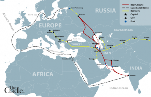 Așadar, iată că Iranul, puternic sancționat de SUA, profită simultan de BRI, INSTC și de acordul de liber schimb cu EAEU (Uniunea Economică Euroasiatică). Cei trei membri esențiali ai BRICS – India, China, Rusia – vor fi interesați în mod special de dezvoltarea coridorului de tranzit transiranian – care este cea mai scurtă rută între cea mai mare parte a UE și Asia de Sud și de Sud-Est, și care va asigura un transport mai rapid și mai ieftin.