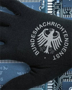 Printre turiştii care se fotografiază în faţa Porţii Brandenburgice din Berlin şi un grup restrâns de kurzi care agită steaguri, abia se pot identifica ceilalţi demonstranţi sosiţi în piaţa Pariser Platz într-o seară de octombrie. Pe pavaj se află o grămadă de pancarte pe care scrie: „Sfera privată este un drept al omului” sau „Nu vrem un NSA german”. Un demonstrant ţine deasupra capului ceva ce seamănă a cameră de supraveghere din carton, cu inscripţia BND (Bundesnachrichtendienst – serviciul german de informaţii externe)