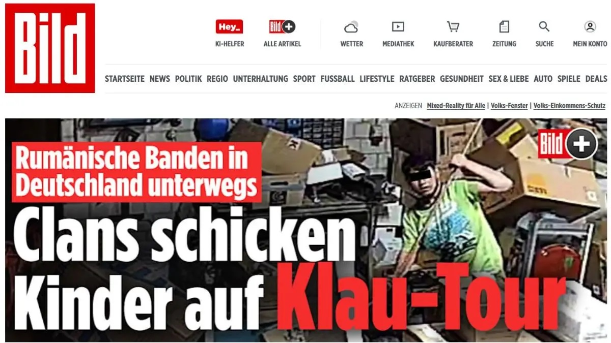După o perioadă în care presa germană renunțase să mai scrie despre infractori români, subiectul a revenit în prim plan. Bild am Sonntag titrează mare: „Rumänische Banden in Deutschland unterwegs, Clans schicken Kinder auf Klau-Tour” (Bande de români pe drumuri în Germania, clanurile își trimit copiii la furat). De fapt, clanurile de romi români, precizează în articol tabloidul cu cea mai mare audiență în Germania, își trimit copiii la furat, pentru că știu că nu pot fi pedepsiți.