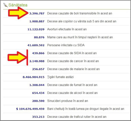 Cele 263.463 de decese din 2018 din România arată că media zilnică a deceselor din România a fost de 722 persoane, cauzele fiind diferite, multe dintre acestea fiind provocate de boli grave, precum cancer sau SIDA, aşa cum arată şi statistica mondială:
