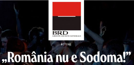 „În fapt, a devenit cunoscut opiniei publice că Banca Română pentru Dezvoltare Societe Generale (BRD) susține și promovează o politică agresivă de reeducare a poporului român, prin felul în care publicația finanțată de această companie alege să promoveze homosexualitatea, iar acest lucru a devenit evident după evenimentele de la Muzeul Țăranului Român. Mai precis, publicația online Scena9.ro, editată de BRD, a ales să jignească și să eticheteze pe toți cei care nu sunt de acord cu exhibiționismul activiștilor LGBT, numindu-i „fanatici religioși” și „fundamentaliști creștini”, în ciuda faptului că România este un model de conviețuire pașnică între majoritate și minorități, în țara noastră neînregistrându-se violențe sau gesturi reprobabile. În România nu există cartiere interzise și nici atentate, deși se pare că unii fac tot posibilul să provoace și alimenteze tensiunile sociale.