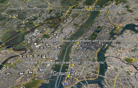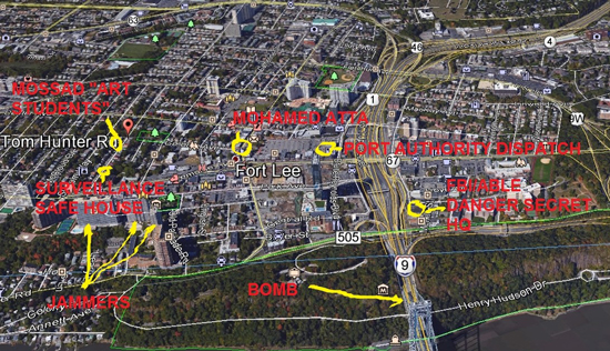 Fort Lee, New Jersey played a key role in 9/11. We are mapping out, using Google Earth, some of the incidents involved in presenting a rational response to the cover up, both the government version and the amateur “aftermarket” B-grade version.