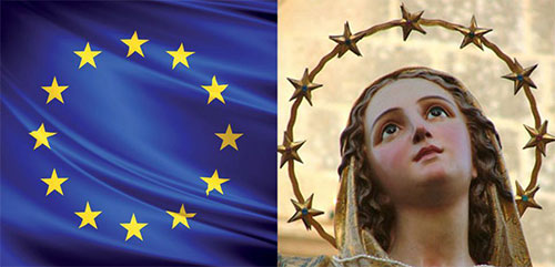 Birocrația de la Bruxelles a mers până acolo încât ignoră influența creștină a steagului său oficial, cele 12 stele care simbolizează idealurile de unitate, solidaritate și armonie între popoarele Europei. Steagul a fost creat de designerul catolic francez Arséne Heitz, care s-a inspirat din iconografia Fecioarei Maria. Însă explicația oficială a Uniunii Europene asupra steagului nu pomenește nimic de rădăcinile sale creștine.