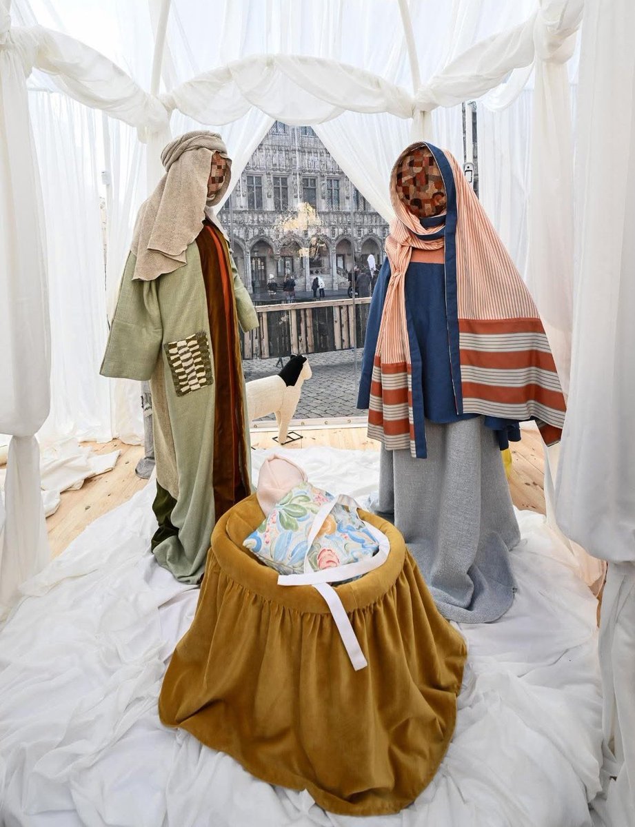 Instalația amplasată lângă bradul de Crăciun care împodobește Grand-Place din Bruxelles în acest an, intitulată „Fabrics of the Nativity” (Țesăturile nașterii lui Iisus), a stârnit critici. Deși include figurile tradiționale ale Mariei, lui Iosif și pruncului Iisus, aceasta înlocuiește imaginile sacre clasice cu păpuși în mărime naturală îmbrăcate în țesături reciclate. Figurile nu au fețe, ci doar modele patchwork în culori bej și maro. Potrivit organizatorilor, scopul a fost acela de a crea „un amestec inclusiv de nuanțe ale pielii”. Criticii susțin că aceasta privează scena nașterii de semnificația sa spirituală și o preschimbă într-o declarație politică, anunță European Conservative.