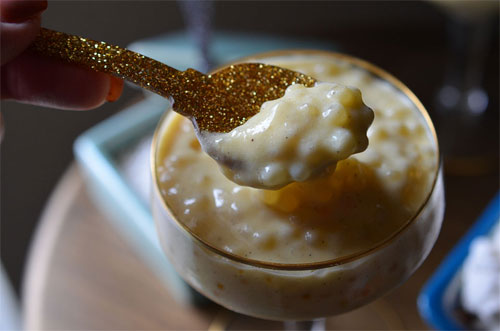 Se adaugă zaharul și se fierbe încet alte 10 minute. Se scoate cu grijă scorțișoara (dacă ați folosit batoane) și se varsă budinca în boluri individuale.