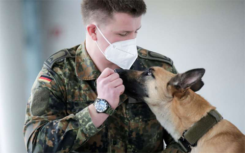 O clinică veterinară germană a instruit câini special antrenaţi pentru a detecta mirosuri (câini snifferi) pentru a detecta noul coronavirus în probe de salivă umană, cu o precizie de 94%.