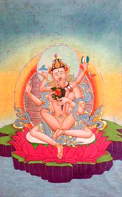 Un ghid tantric din Kalimpong, India, descrie o modalitate de meditaţie în cuplu, specifică procedeului inițiatic VAJRA („VAJRA” înseamnă lumină, diamant şi desemnează totodată organul sexual masculin). Acest procedeu inițiatic, cunoscut încă din secolul al VIII-lea în partea de est a Indiei, are ca scop cosmizarea trăirilor în cadrul cuplului, prin raportarea la şi unificarea în esenţa divină a fiinţei iubite.