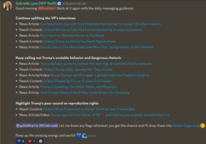 Pentru a corobora acest fapt, o investigație realizată de The Federalist a dezvăluit că de fapt campania lui Harris a manipulat intens Reddit. Acest articol revelator explică modul în care agenții lui Harris au coordonat eforturile de a trimite mesaje pro-Harris pe site. Apoi, angajații foloseau conturi false pentru a da un vot favorabil postărilor și pentru a orienta comentariile în direcția dorită.