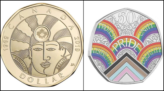 Primul dolar gay a fost lansat în Canada, în 2019, noua monedă fiind emisă pentru a comemora 50 de ani de progres în recunoașterea drepturilor canadienilor LGBTQ”.