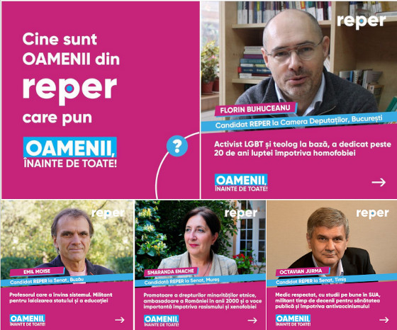 Candidați pe listele REPER: fondatorul ACCEPT, Buhuceanu, care susține că aproape 10% dintre români sunt homosexuali, anticreștinul Moise, cel cu eliminarea icoanelor din școli, și informatoarea Securității Smaranda Enache