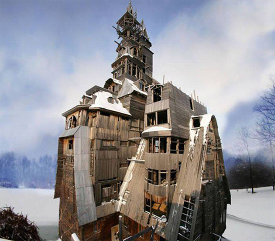 De fapt, seamănă cu o biserică de lemn, ridicată din resturi și în mare grabă. Este greu de apreciat cât va mai rezista această construcție fantastică și fragilă. Însă trebuie să recunoaștem că este o casă de lemn destul de impresionantă.