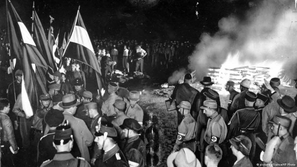 În legătură cu ea am o amintire pregnantă din liceu. Prin clasa a opta sau a noua, în manualul de Istorie am văzut o ilustraţie care m-a revoltat şi scârbit peste măsură: un grup de naţional-socialişti, adică nazişti, dădeau foc pe stradă unei grămezi uriaşe de cărţi, tablouri, grafică, desene, texte de tot felul. Erau acolo biblioteci întregi. Obişnuit de mic să consider cartea, literatura, cultura, o condiţie sine qua non a vieţii morale şi inteligente, a dezvoltării armonioase a personalităţii umane, a umanismului elegant şi decent de care nu mă puteam lipsi, am reacţionat imediat cu durere, cu frustrare, cu mânie. Aşa ceva nu mai văzusem niciodată: ergo Germania era o adunătură de barbari.