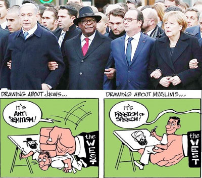 Aşa-zişii apărători ardenți ai libertății de exprimare care s-au manifestat cel mai zgomotos pe 7 ianuarie, după atacul armat de la sediul Charlie Hebdo, s-au dovedit ulterior a fi plini de fățărnicie, iar intenţiile lor ascunse au devenit transparente datorită limbajului cu dublu sens folosit de ei, chiar dacă ele erau ascunse în spatele unor cuvinte frumoase.