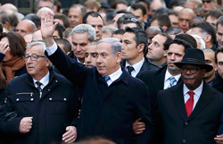 Presa israeliană a relatat că primul ministru Beniamin Netanyahu practic s-a autoinvitat la marșul de la Paris. Netanyahu și palestinianul Mahmud Abbas au stat la stânga și la dreapta președintelui Hollande, aparent în semn de comuniune, în numele unei cauze care transcende conflictul arabo-israelian. Merită să menționăm că ziarul israelian Haaretz, în ediția din 8 ianuarie 2015, a punctat caracterul jenant al mesajului de condoleanțe al lui Netanyahu, care, folosindu-se de oportunitatea oferită de drama de la Paris, a căutat o dată în plus să justifice politica israeliană de colonizare: „Faptul că a făcut din Israel punctul central al mesajului său de condoleanțe a fost grosolan și vulgar”.