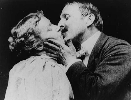 Primul sărut de pe marele ecran a avut loc în 1896, în filmul Sărutul, avându-i drept protagonişti pe May Irwin şi John Rice. Filmul care a durat doar 47 de secunde a fost realizat de inventatorul Thomas Edison şi a iscat un mare scandal la acea vreme. Jurnaliştii spuneau că „poliţia ar trebui să oprească astfel de apariţii și manifestări dezgustătoare”.