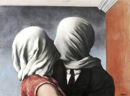 Îndrăgostiții lui Rene Magritte (1928) sunt surprinși în timpul unui sărut, dar nu e vorba de un sărut obișnuit, ci de unul în care fețele celor doi sunt înfășurate în bucăți de material menite să le ascundă chipul. Lucrarea Îndrăgostiții se află la Muzeul de Artă Modernă de la New York.